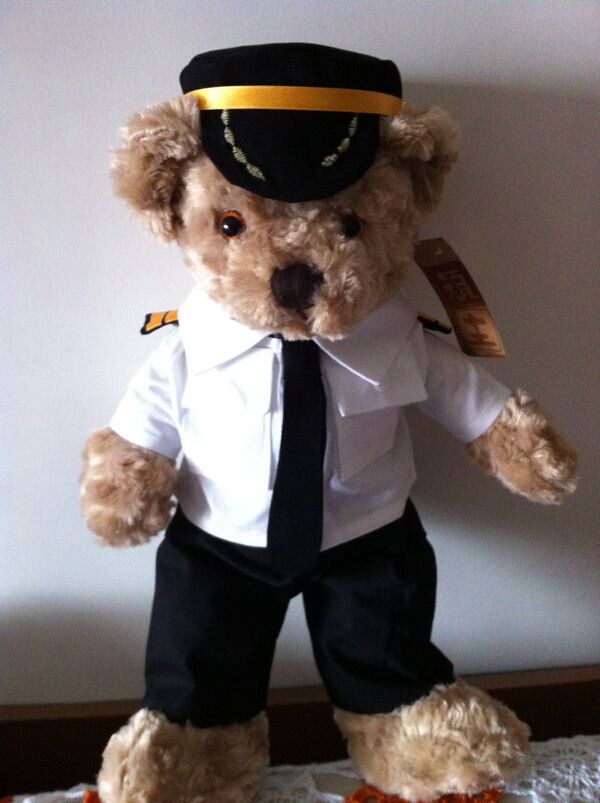 他送过一个可爱的机长熊给她,一只绒毛熊穿着机长的衣服,很神气的样子。